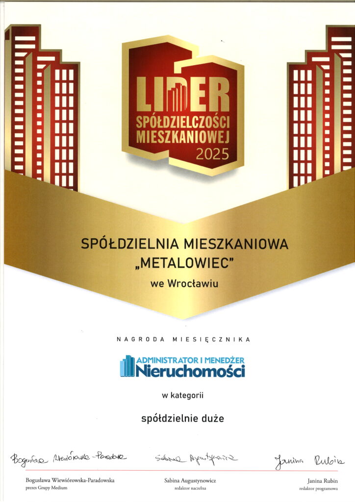 Poniżej znajdą Państwo nagrody i wyróżnienia przyznane naszej Spółdzielni Mieszkaniowej Mieszkaniowej. Są to zarówno dyplomy, certyfikaty jaki i statuetki oraz wyróżnienia. Od 1997 roku zgromadziliśmy całkiem sporą kolekcję nagród i wyróżnień, którą można zobaczyć w siedzibie Zarządu Spółdzielni, czyli w budynku przy ulicy Inżynierskiej 17.